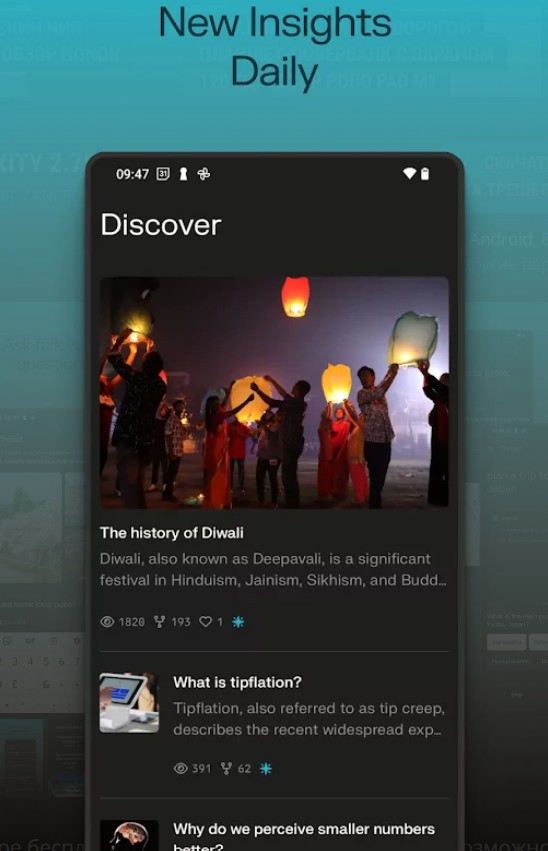 Perplexity сохраняет историю ваших запросов не просто как список, а как подборку открытий . Вы можете возвращаться к своим исследованиям, продолжать прерванные диалоги и систематизировать найденную информацию. Раздел «Открытия» позволяет узнавать новое от сообщества и находить интересные запросы других пользователей.